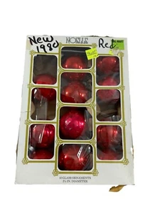 Vintage Noelle 11 Red Glass Ball Christmas Ornaments USA Holiday W Box READ