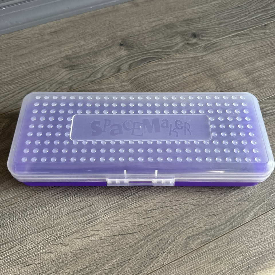 Vintage Spacemaker Long Pencil Case 13" Ruler Storage Box Purple/Clear