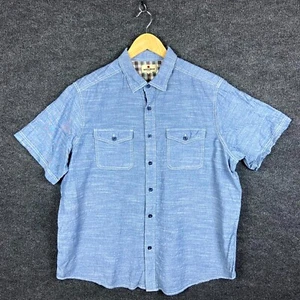 Woolrich Mens Shirt XL Blue Chambray Short Sleeve Button Up Regular Fit Cotton
