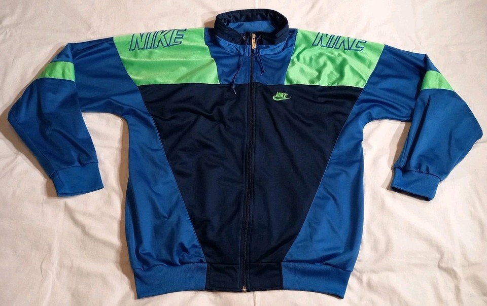 VINTAGE 1990'S NIKE MENS TRACK TOP JACKET BLUE/GREEN RETRO SIZE M