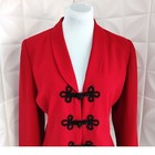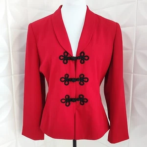 Le Suit Red Fitted Blazer Work Jacket Holiday Black Asian Buttons Long Sleeve 14