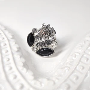 Vintage Y2K Guess Cocktail Ring Flower Clear & Black Rhinestone Logo Tattoo 6.5