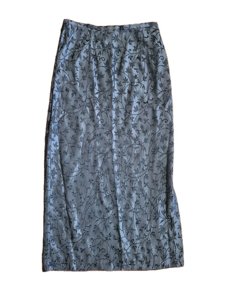 JS Collections Long Skirt Beaded Black Floral Lined Side Slit Size 10