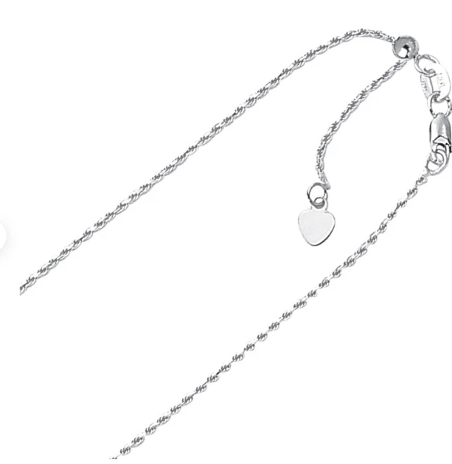 14k 18"- 22" White Gold 1.0mm Diamond Cut Adjustable Rope Chain 3.3 grams