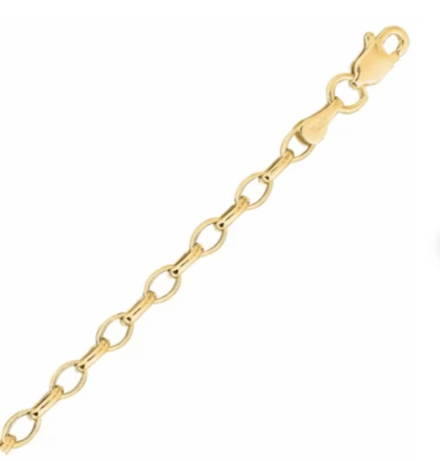14k Yellow Gold Lite Oval Rolo Link Chain Bracelet 7 Inch 1.7 grams 3.2 MM