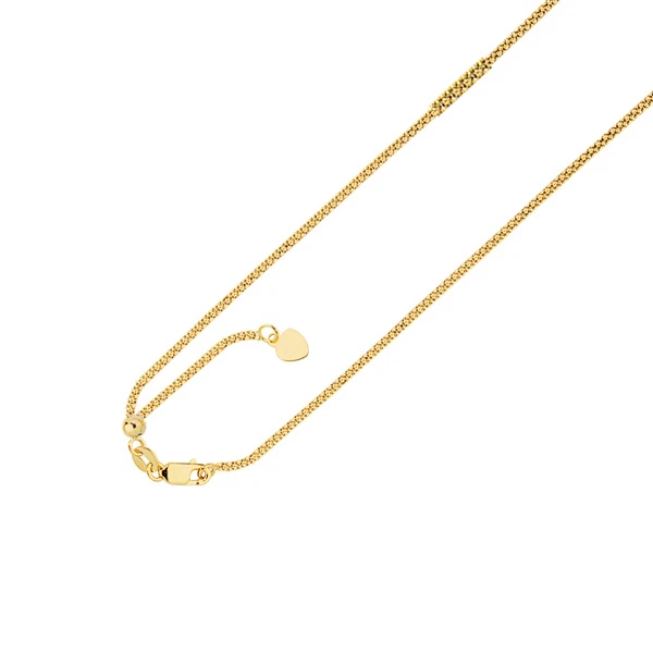 14kt Yellow Gold 22" Adjustable Popcorn Pendant Chain/Necklace 1.3 mm - 2.5 gram