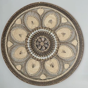 Boho 1970s Wall Decor Art Hanging Raffia Lace Natural Shells Round Huge 18”