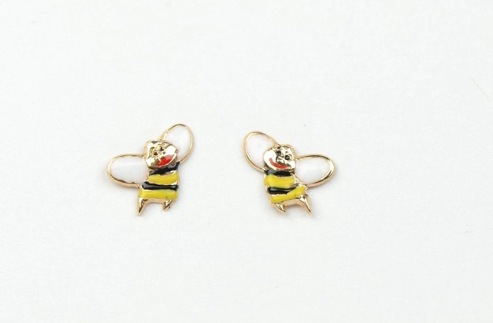 14k Yellow Gold Baby Beautiful Enamel Bee earrings with Screw Back