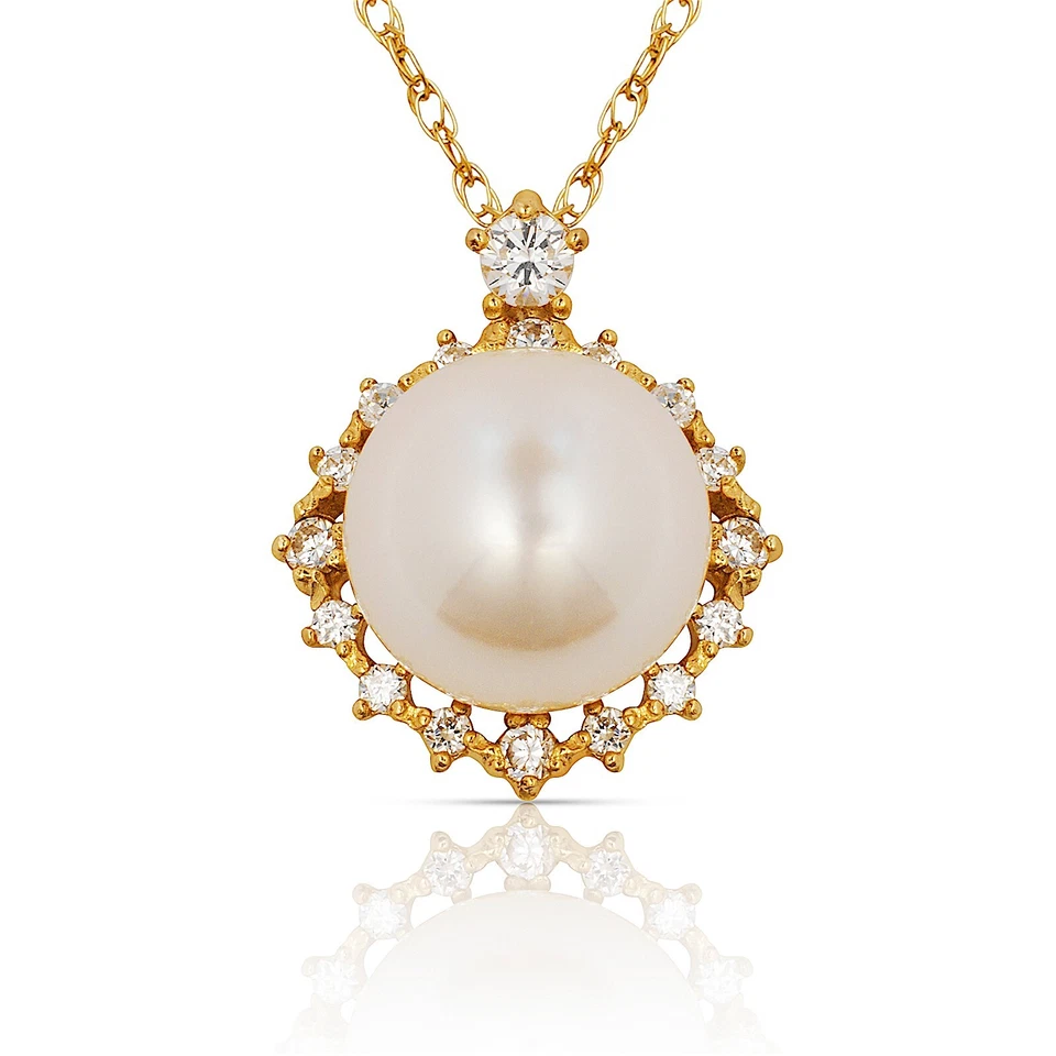 - White Pearl Yellow Gold 14k Fine Necklaces & Pendants,