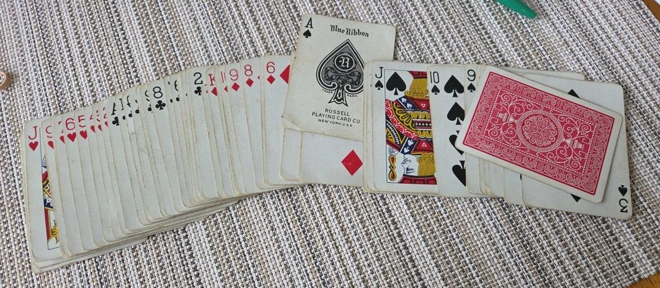1910s VintageBlue Ribbon Vintage Playing Cards 52 Red Back, No Box, Used