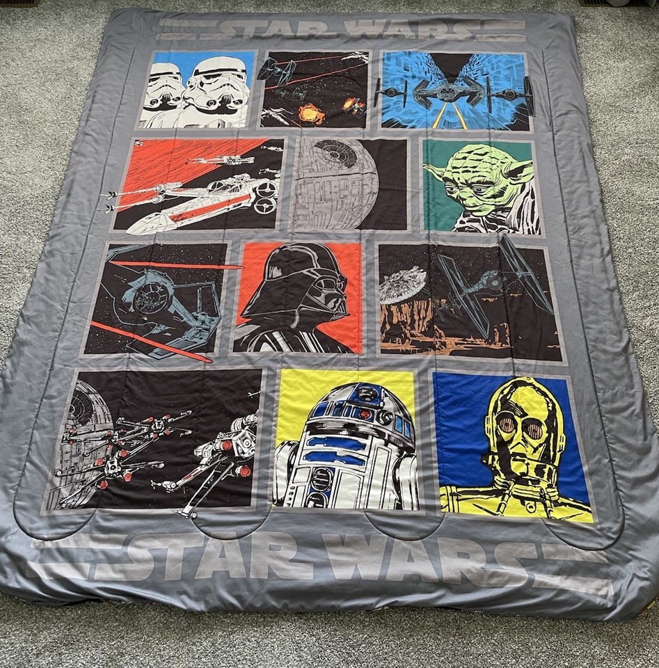 Vintage Star Wars Blanket Approx 85x70 Lucas Films Gray C3PO R2D2 Darth Vader