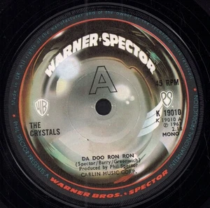 Crystals Da Doo Ron Ron 7" vinyl UK Warner Reissue of 1963 release solid label