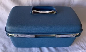 Vtg Blue Samsonite Saturn II Makeup Train Case Carry On Luggage Very Good Cond.