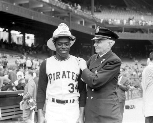 Pittsburgh Pirates Al McBean and Firefighter April 12, 1965 Photo