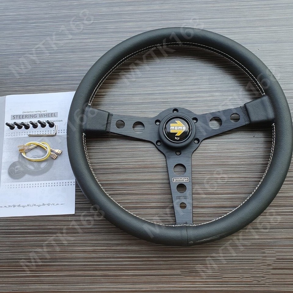 340mm 14' MOMO prototipo Genuine Leather Thickened Spoke Sport Steering Wheel
