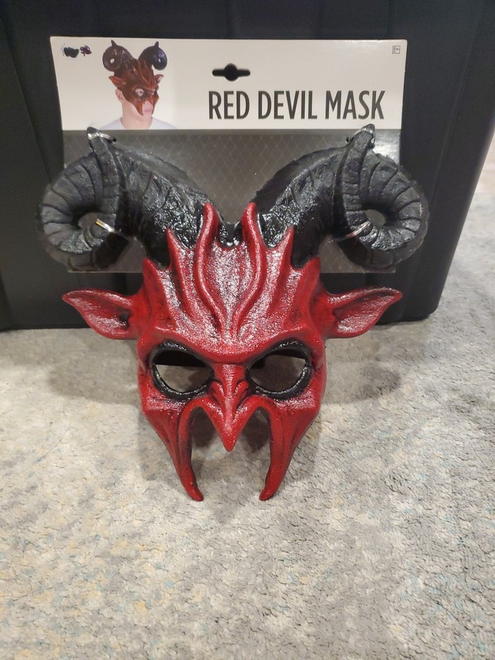 Halloween Demon Devil Satan w/ Black Ram Horns Masquerade Party Mask Bloody Red