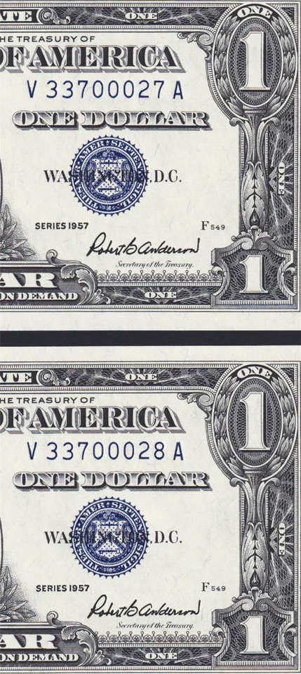 X2 $1 1957 SILVER CERTS SEQ #'D UNC GEM-LIKE