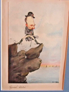 AQUARELLE humoristique représentant le general André par Duménil.Leblé en 1904