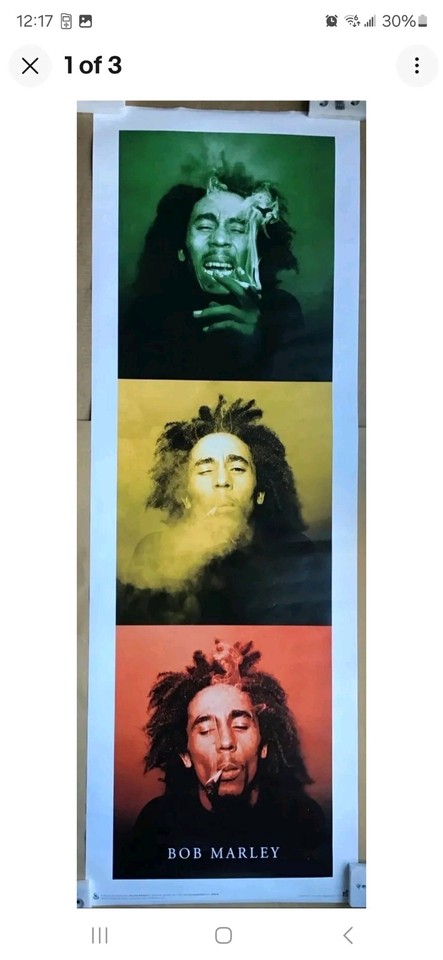 Bob Marley Smoking 3 Door Poster. 2008 Nos
