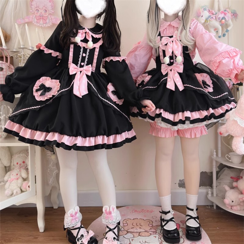women Sweet Bow Ruffle Lolita Kawaii JSK Strap Japanese Dress