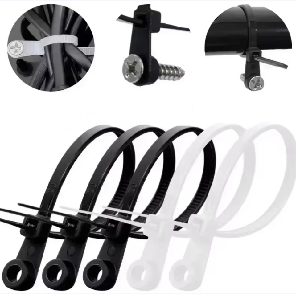 300/200x Nylon Cable Ties with Screw Hole Mount - Self-Locking Loop Zip Tie Wrap