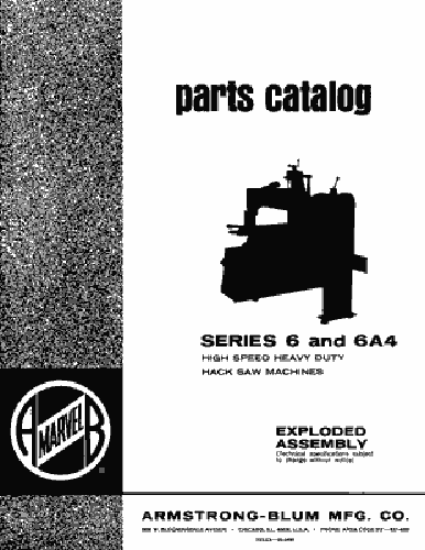 Marvel Series 6 and 6A4 Hack Saw Parts Manual