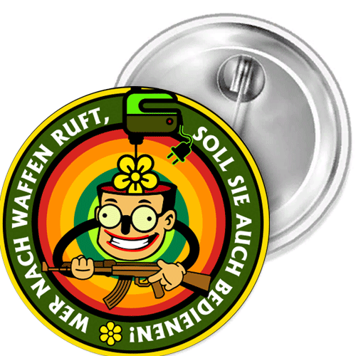 Wer nach Waffen ruft,soll sie au Button Anstecker Aufkleber Flaschenöffn Spiegel