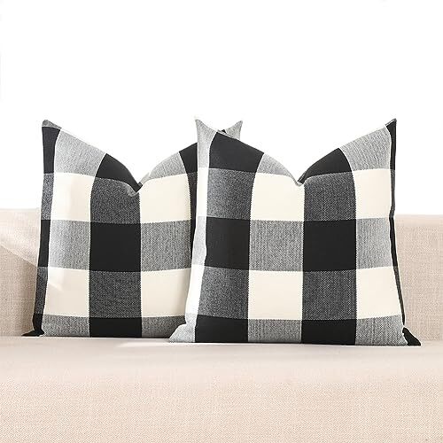 Buffalo Plaid Pillow Covers 18x18 Set of 2 Square 18 Inches Black Buffalo Plaid