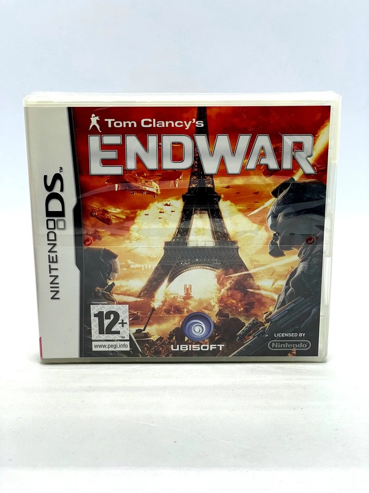 Following nearly ten years of highly regarded first-person shooter and stealth games, the techno-thriller Tom Clancy franchise deploys its first true battle strategy title. Set in the near future, EndWar puts players in command of high-tech tanks, helicopters, infantry, and other units, in combat across world-capital battlefields such as London, Paris, and Washington, D.C. Although many earlier Tom Clancy games play out in secret organizations and covert missions, the suitably titled EndWar takes place in the open, across the globe, in nothing less than World War III. In the year 2020, nuclear warfare in the Middle East has left Russia with most of the world's available fossil fuel -- and cash. The United States' threatens from above, with the strength of its space program, while Europe's technological and diplomatic superiority threaten from within. Each of these three factions is playable against the others in its own 30-plus mission campaign.<br><br>Also unlike most previous Tom Clancy games, EndWar is a widely cross-platform release, with different versions available for handhelds, as well as for PC and the contemporary high-def consoles. The Nintendo DS version of EndWar is a turn-based strategy game, designed to be easy to learn but compelling to conquer. "EndWar" has a double meaning, as it also describes the last phase in a battle. When a winning side has captured more than half of the map objectives, the losing side gains access to a WMD -- each faction has a different ultimate weapon. Meant to give the losing player a final chance at victory, use of the WMD is not without a big drawback: if the losing side chooses to use its WMD, the winning side then gains access to its WMD as well. In addition to the three factional single-player campaigns, the game's multiplayer options allow head-to-head combat through a local wireless connection, and a built-in editor lets players create, save, and share custom scenarios for one or two players.