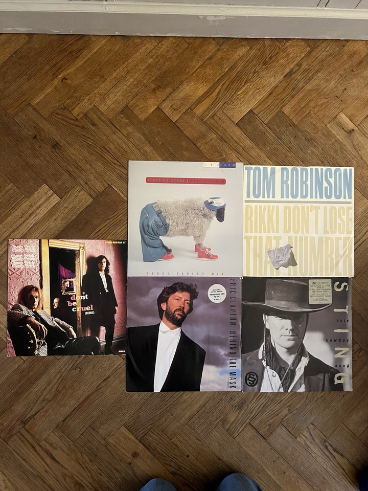 5 x 12" Vinyl Singles Sting, Eric Clapton, The Farm, Tom Robinson, Cheap Trick