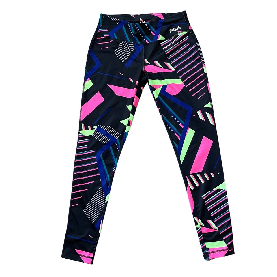 FILA Sport M Leggings | NWOT Neon 80s-Inspired Print High-Rise Activewear Y2K