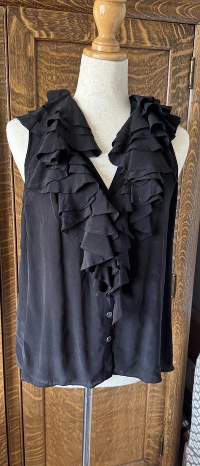 AllSaints Black Silk Sleeveless Spitalfields Shirt US Size 6