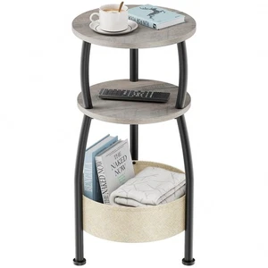 3-Tier Round End Table with Storage Basket,Accent Bedside Corner Table For Room