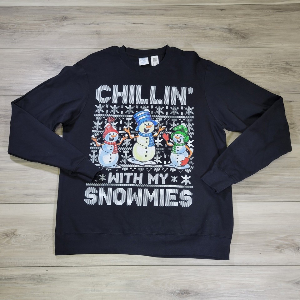Chilin With My Snowmes Sweater Men's Medium Black Short Sleeve