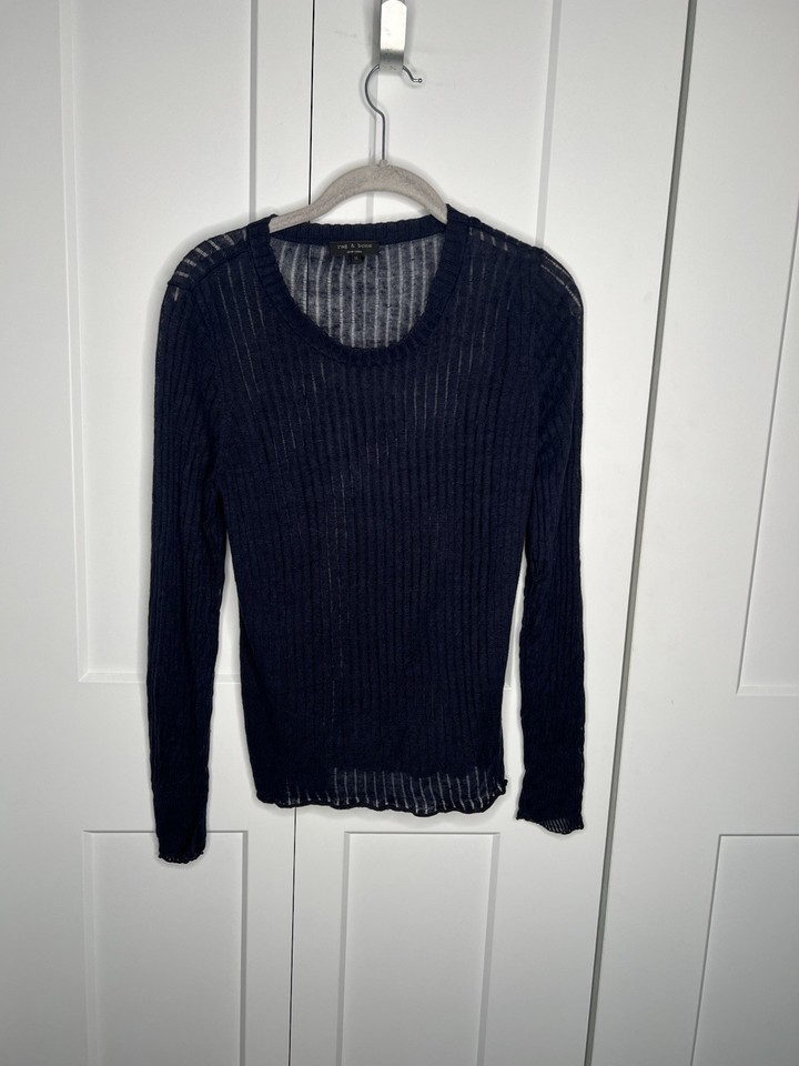Rag & Bone Sheer Ribbed Long Sleeve 100% Linen Top women's size medium
