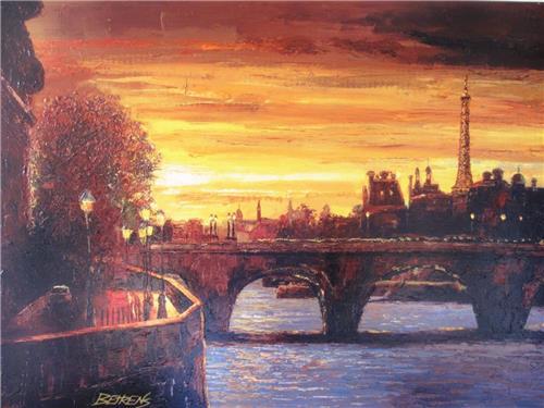 Howard Behrens Twilight on the Seine II 5 Carat Diamond Ed., Heavily Embellished