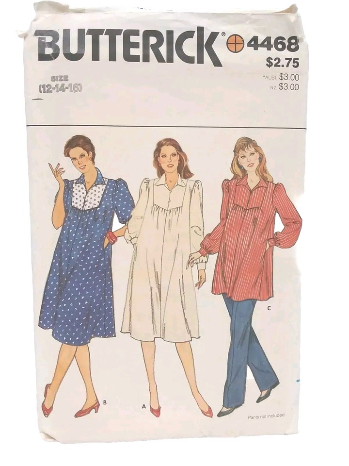 Vintage Butterick Pattern 4468 Maternity Dress & Top Size 12-16 1980's