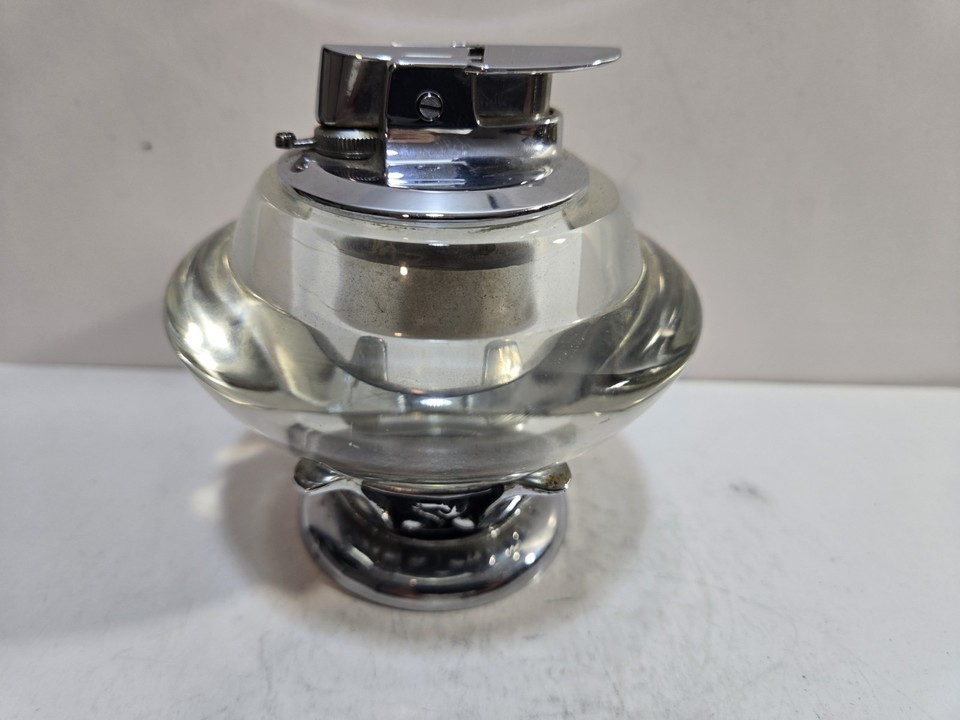 Working Ronson Nordic Varaflame Table Lighter Glass Chrome Silver Metal 7922/13