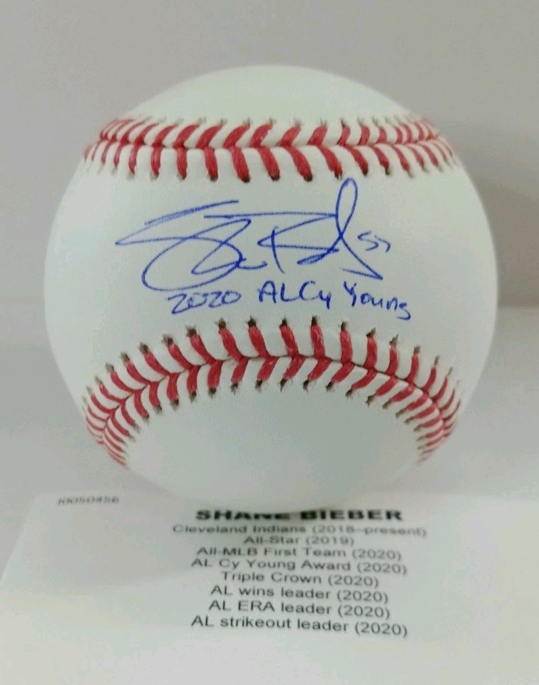 Shane Bieber Autographed Cleveland Guardians 2020 CY Young TriStar Baseball