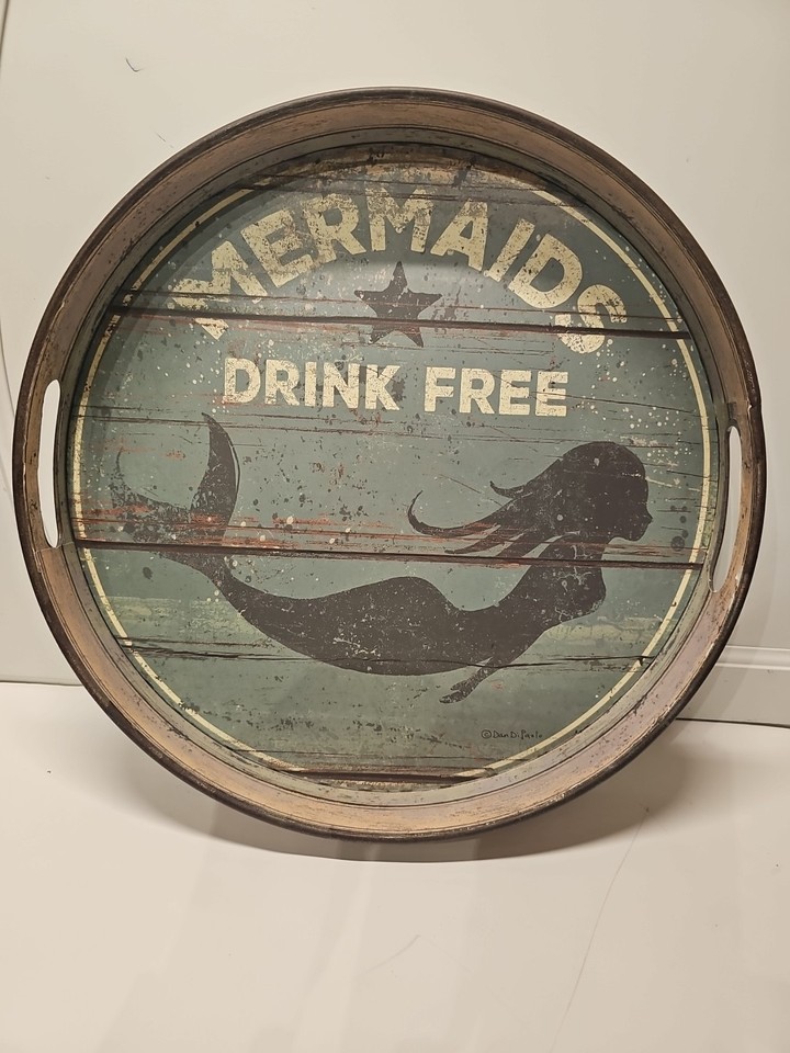 MERMAID COASTAL DECOR Primitives By Kathy / Dan DiPaolo Metal Bar Tray 13"