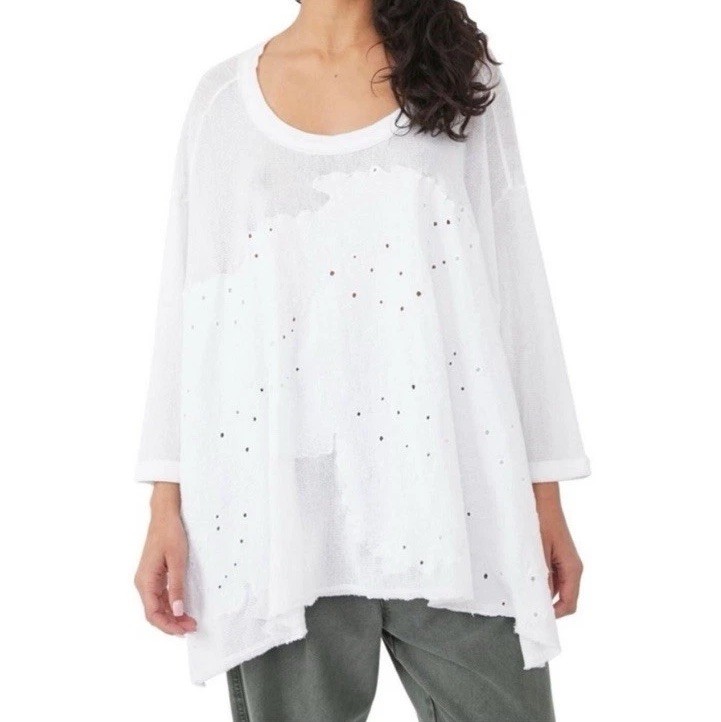 Free People Women's Size XS White Palm Tree Dreams Tunic Top Slouchy Oversized