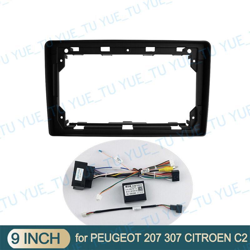 9'' Car Radio Stereo Frame Fascia Panel w/Harness for PEUGEOT 207 307 CITROEN C2