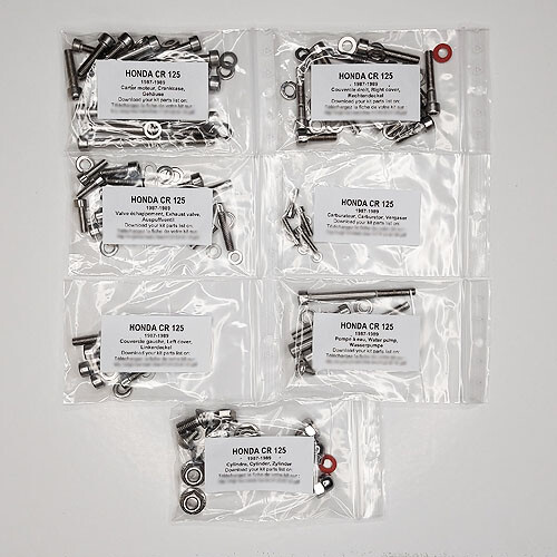 HONDA CR 125 1987 1988 1989 Kit vis BTR inox moteur complet CR125R CR125