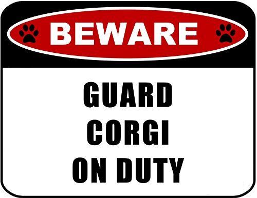 Beware Guard Corgi (v2) on Duty 11.5 inch x 9 inch Laminated Dog Sign