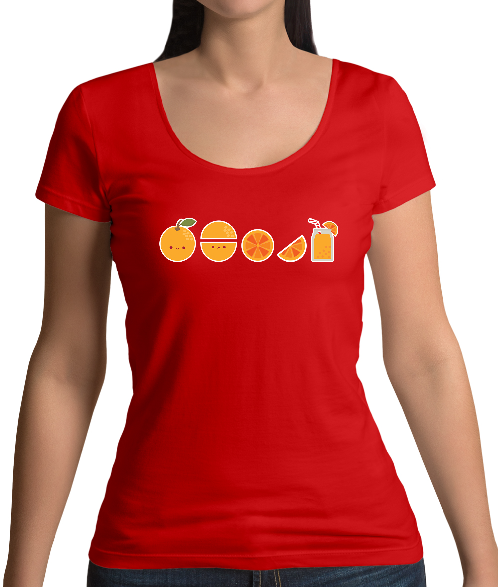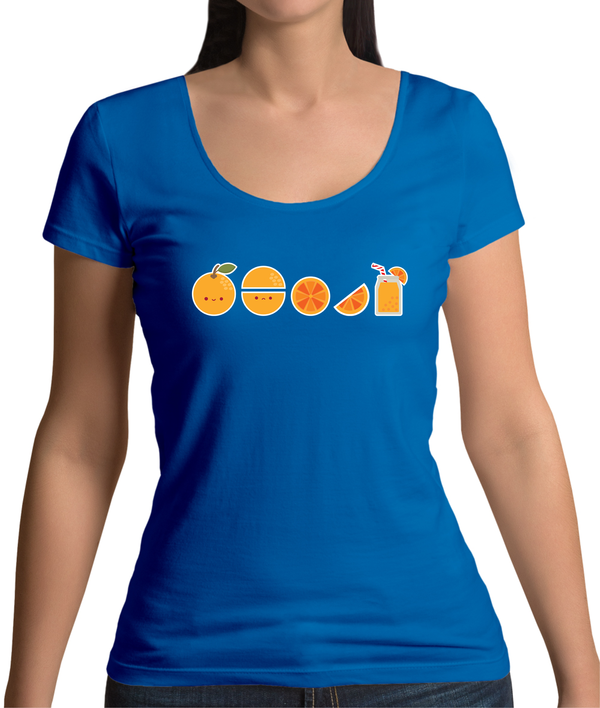 Evolution der Orange Damen Rundhals T-Shirt Frucht Hawai Früchte Sommer Obst