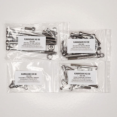 KAWASAKI KX 80 1983 1984 1985 Kit vis BTR inox moteur complet KX80