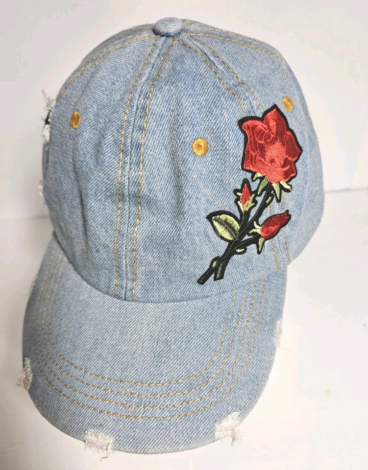 David and Young Adult Distressed Denim Embroidered Rose Baseball Cap Pre-owned