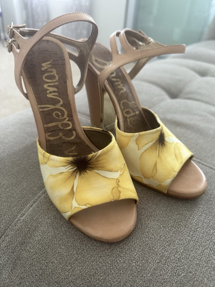 SAM EDELMAN Peep Toe Ankle Strap Size 7 1/2 Block Heel Floral Sandals