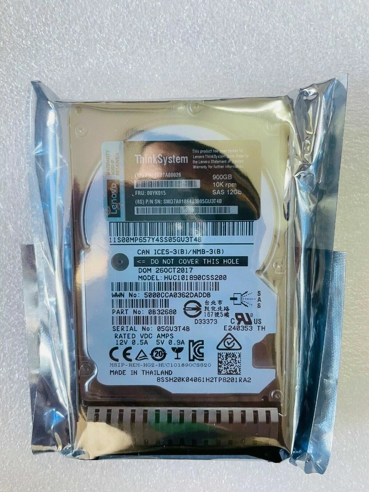 New Lenovo 7XB7A00026 00YK015 900GB 10K 12Gbs SAS 2.5'' Hard Disk Drive HDD