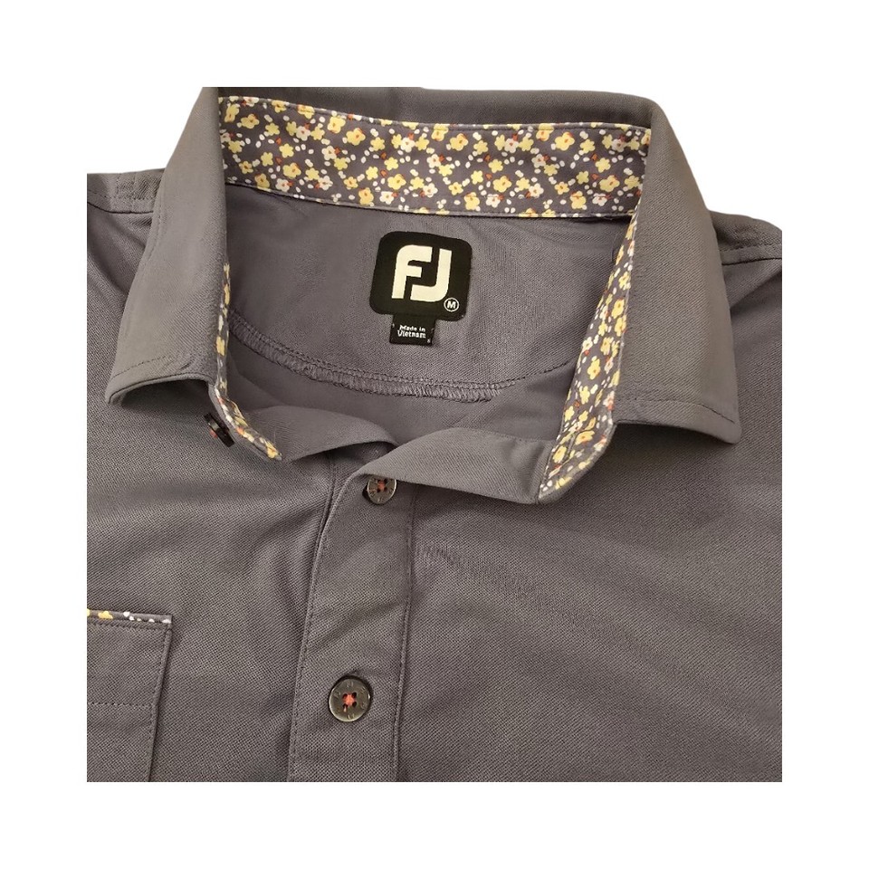 FootJoy Men’s Golf Polo Shirt Medium Gray Performance Floral Trim Pocket Elkview